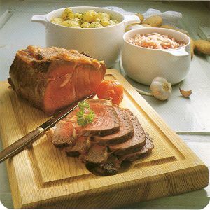 Pro přípravu potřebujete kus plecka ze zadního konce, z místa, kde začíná hřbet. Osmahnutím a pomalým pečením bude pak maso na povrchu hnědé, přitom uvnitř zůstane růžové a šťavnaté. |